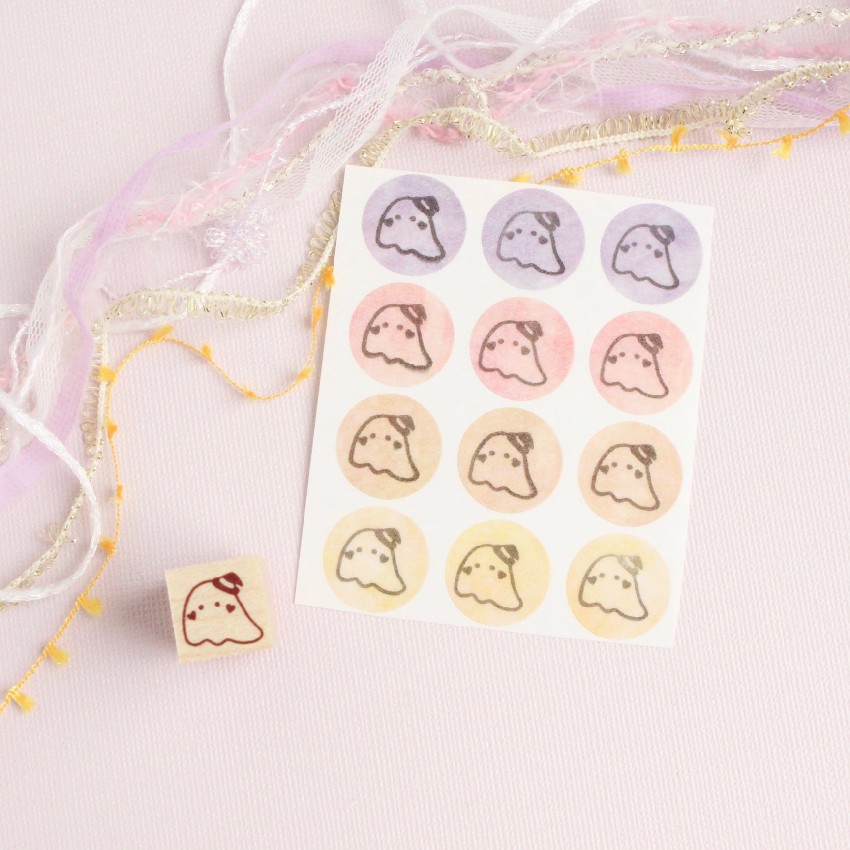 ハートほっぺのミニおばけのラバースタンプです。